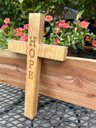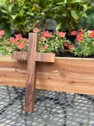 Elevate your faith with our Handheld Christian Cross, meticulously carved from reclaimed oak, maple, pine, or Eastern Red Cedar for a sustainable, meaningful keepsake. Proudly made in the USA and handcrafted in Tennessee, each cross can be custom engraved for a personal touch. Measuring 9 inches high x 5 inches wide x 0.75 inches thick, this lightweight cross is finished with a rich stain for lasting beauty.