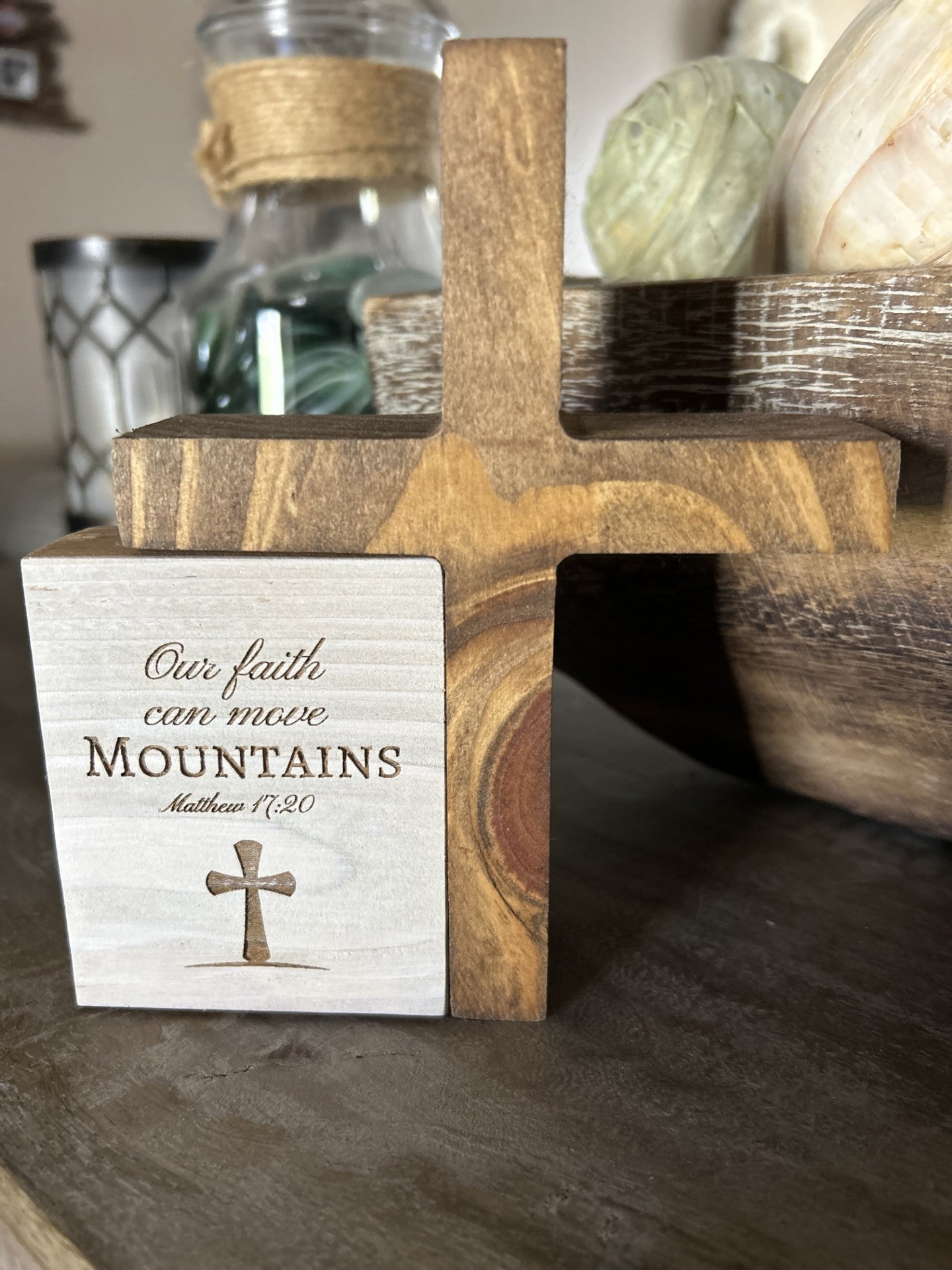 Engraved Christian Scripture Décor – Shelf Sitter | Matthew 17:20
