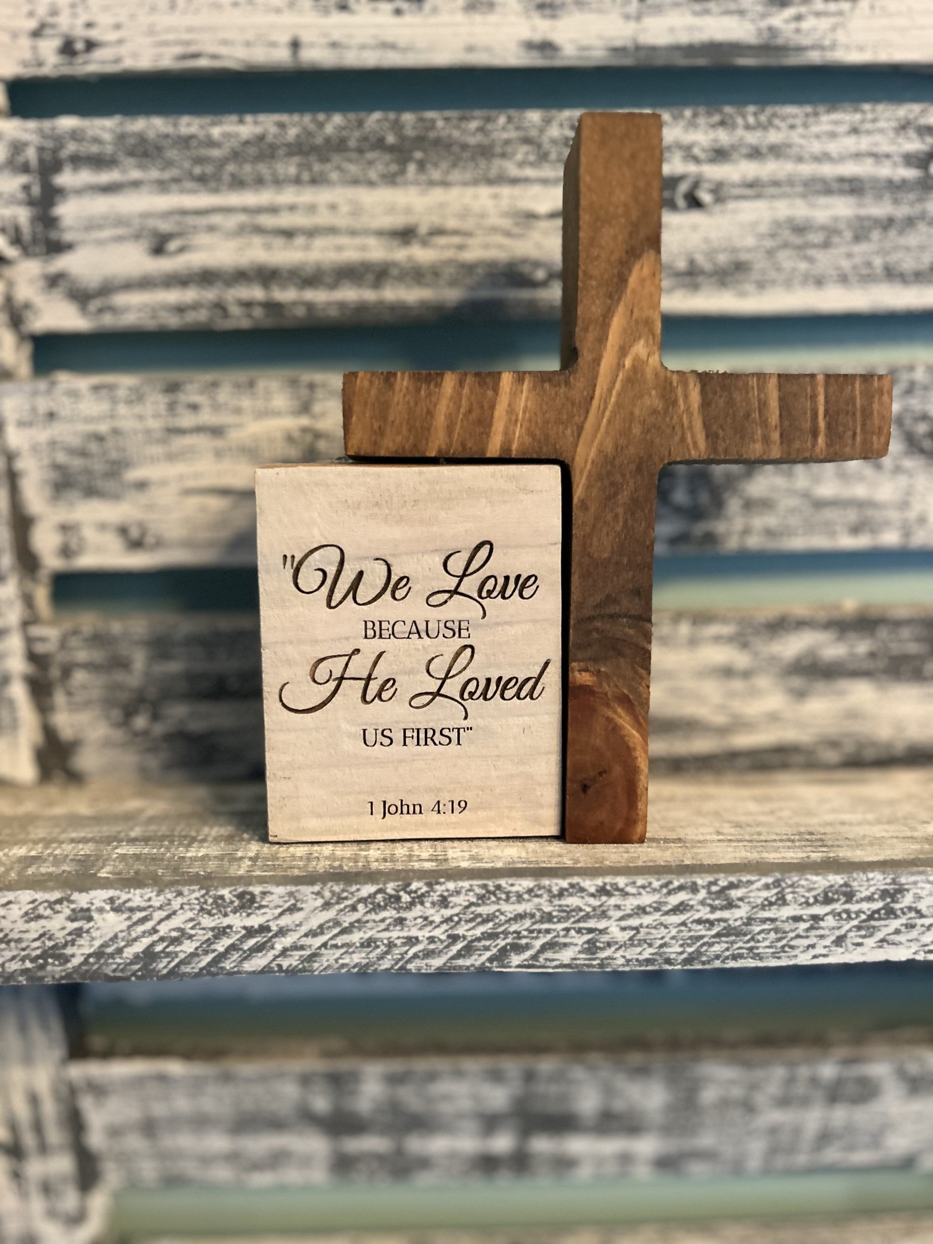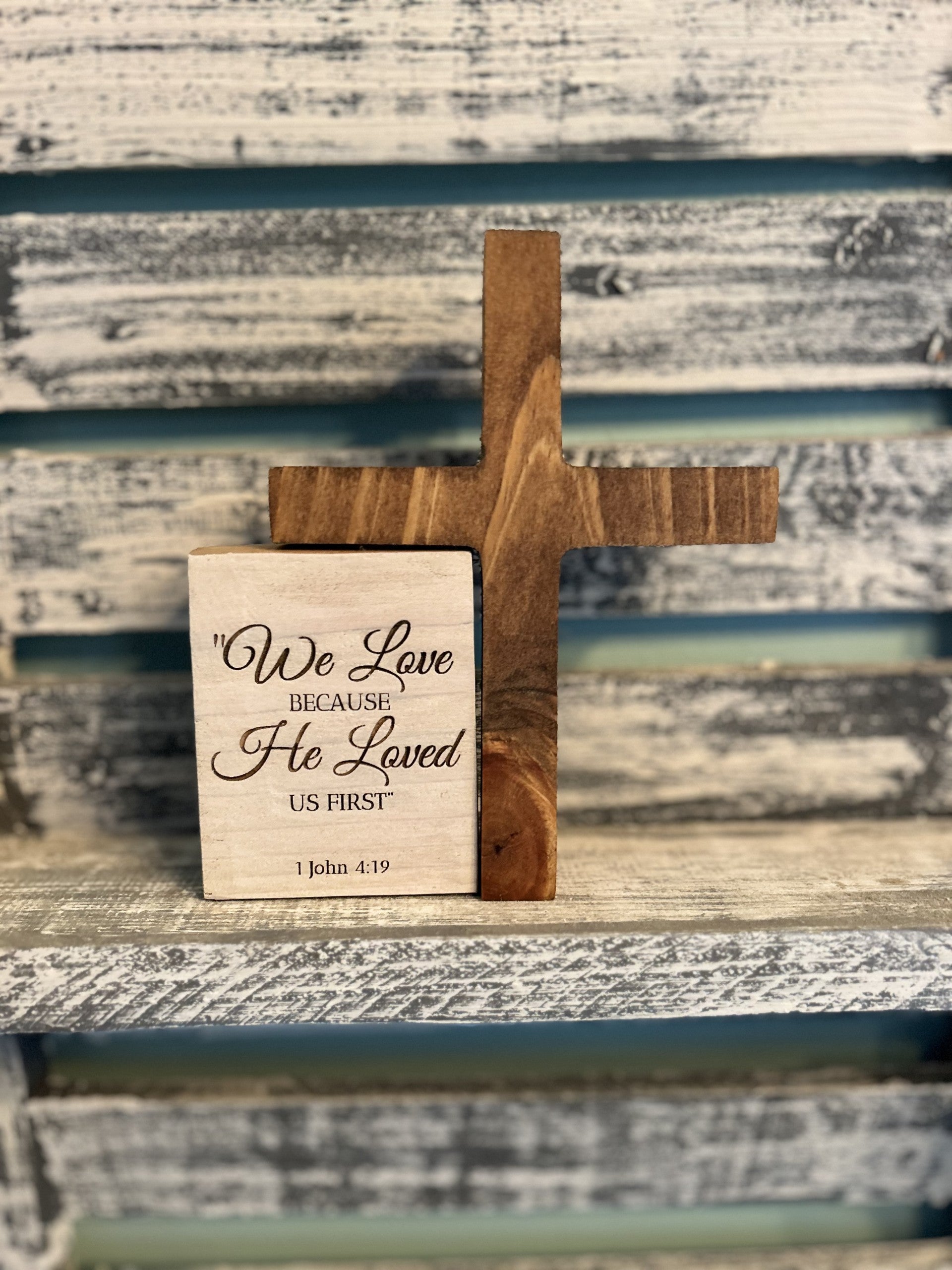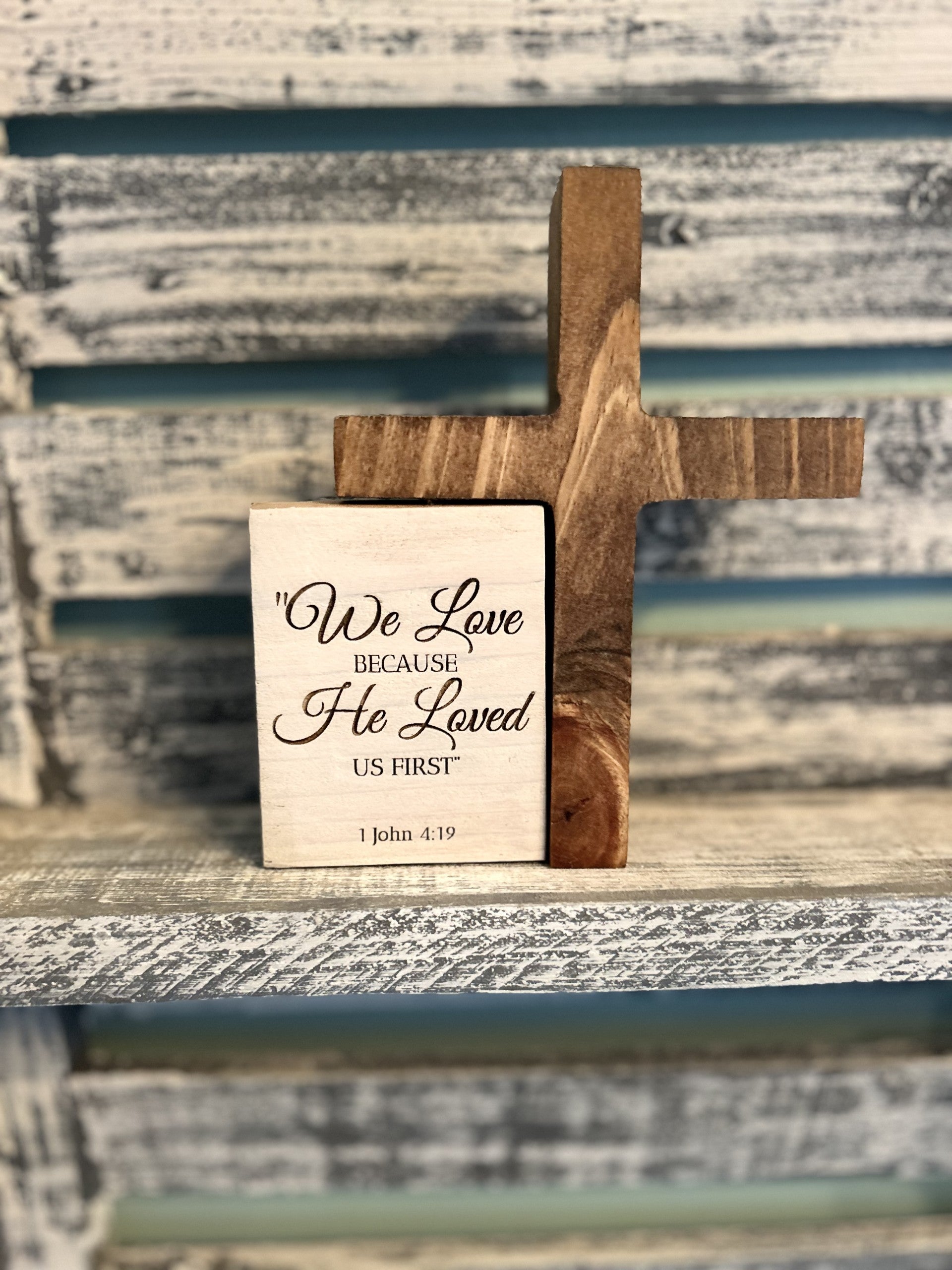 Engraved Christian Scripture Décor – Shelf Sitter | John 4:19
